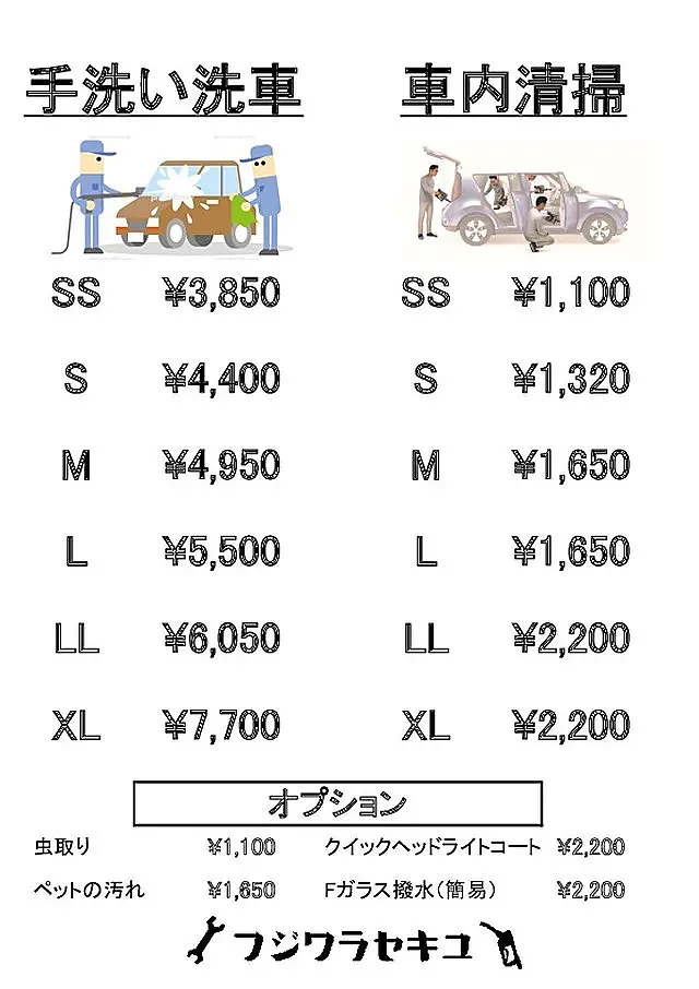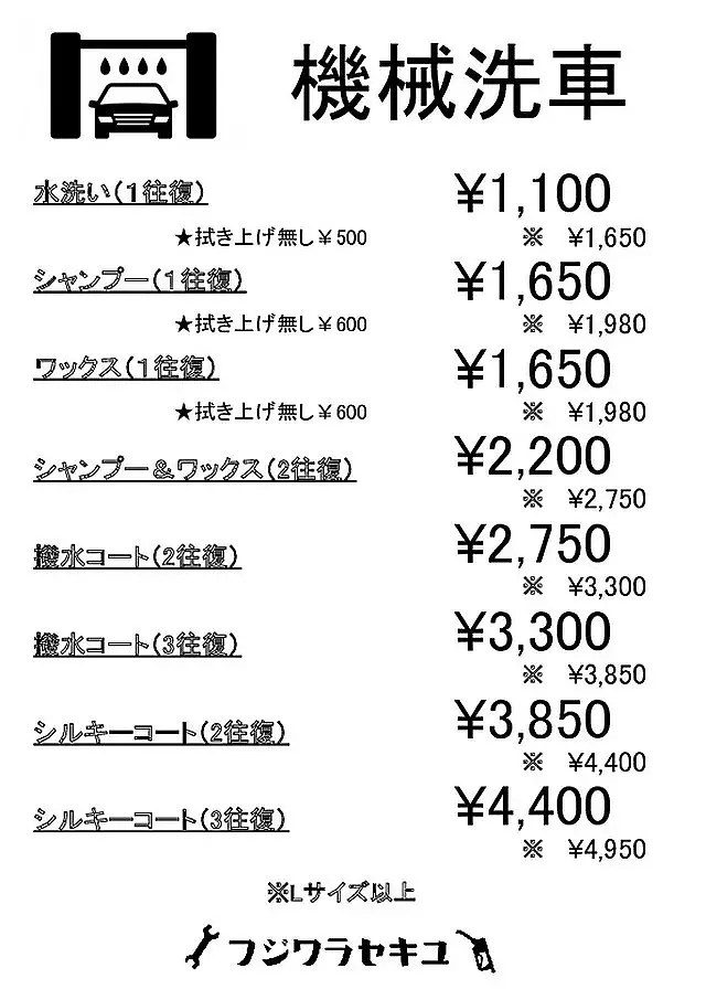 スピーディーな機械洗車と、洗車機では洗えない細部まで洗う手洗い洗車からお選び下さい。
